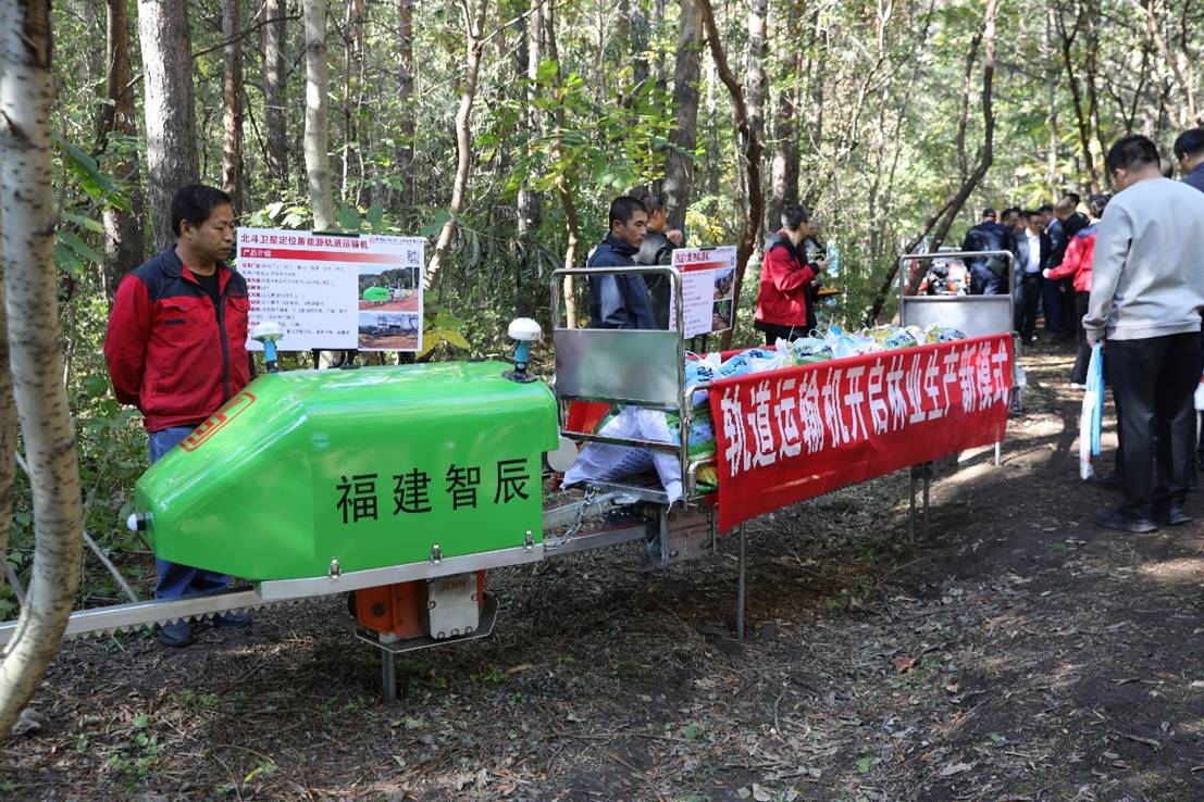 会议现场,三家企业及科研单位的装备演示成为焦点:广东振声的电动单轨运输机续航超 10 小时,可载重 500 公斤并攀爬 40 度陡坡;福建智辰展示柴油与电动两款轨道运输机,其电动机型搭载北斗定位,支持手机 APP 操控,坐拥 36 项发明专利;龙江森工佳木斯林业机械厂的 6 款设备中,多功能山地运输履带车适配多种林地环境。此外,省森林保护研究所的灭火机器人以快速响应能力与图像传输功能,为林区安全提供技术支撑。