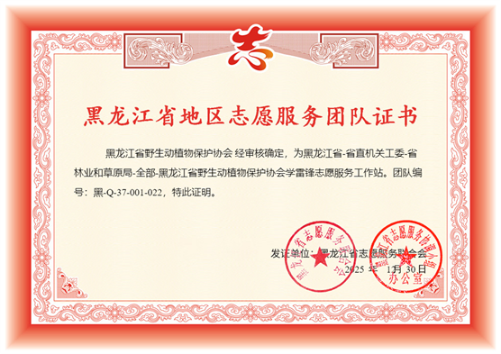 为给黑龙江省野生动植物保护志愿者们搭建一个规范、专业的服务平台,经黑龙江省野生动植物保护协会与黑龙江志愿服务联合会积极沟通,于2025年12月16日在黑龙江志愿服务平台成功建立了黑龙江省野生动植物保护协会学雷锋志愿服务工作站。这一工作站的成立,给志愿者们搭建一个规范、专业的服务平台,标志着黑龙江省野生动植物保护志愿者工作迈向了规范化、制度化的新阶段,为志愿者们开展保护活动提供了坚实的组织保障。