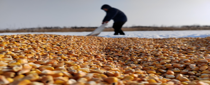 工作人员在积雪覆盖地区投喂大量玉米