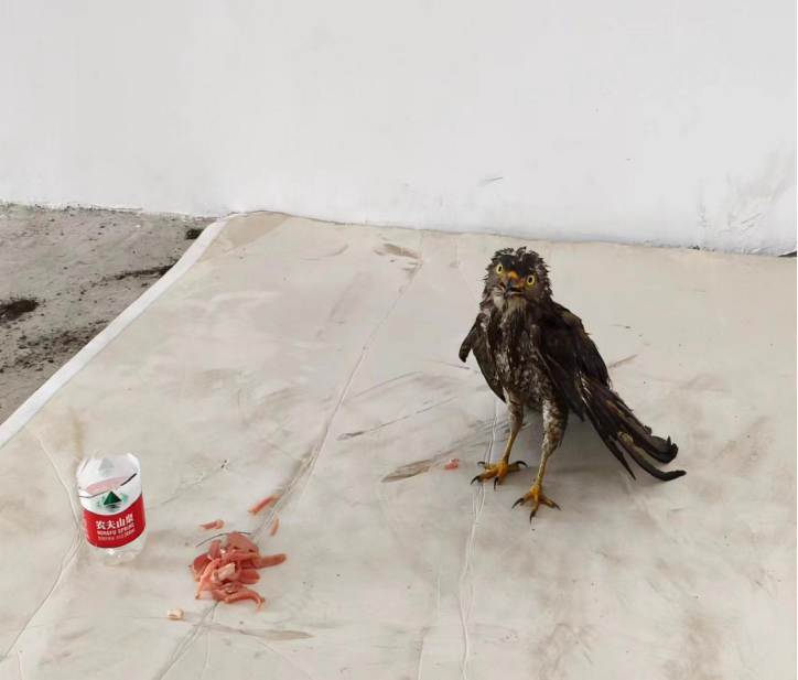 林场将此信息上报至七台河市林草局生态保护科,生态保护科联系了野生动物救助站,于次日驱车来到大六林场将野生苍鹰带走,送至野生动物救助站进行救治。