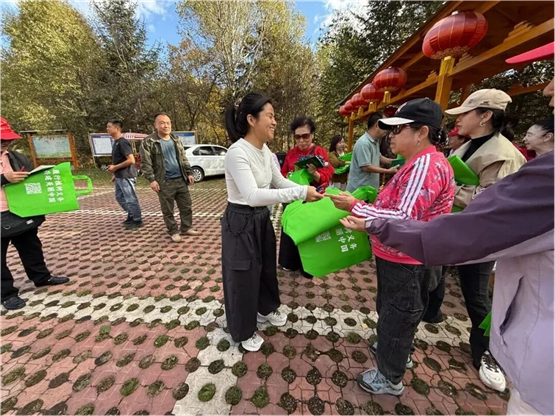 佳木斯市林草局通过悬挂宣传条幅、发放科普宣传资料等形式,向广大游客普及古树名木保护相关法律法规和科学知识,重点讲解了古树名木的认定标准、生态价值、文化内涵以及日常养护管理技术要点。活动精心准备了印有“保护古树名木,传承生态文明”主题字样的记事本、笔、环保袋等实用宣传品。现场共发放科普宣传品300余份,接待群众咨询百余人次,有效提升了社会公众对古树名木保护的认知度和参与度。