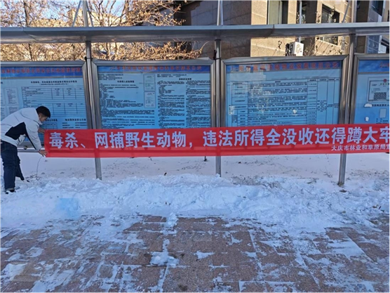在执法过程中,联合检查组同步开展野生动物保护宣传工作,通过悬挂条幅、发放宣传单、面对面普法等方式,向经营者普及《中华人民共和国野生动物保护法》,宣传鸟类保护知识,对今年制定的《大庆市举报破坏野生动植物资源行为奖励办法》进行宣传解读,公开举报渠道,鼓励群众积极提供违法犯罪线索。