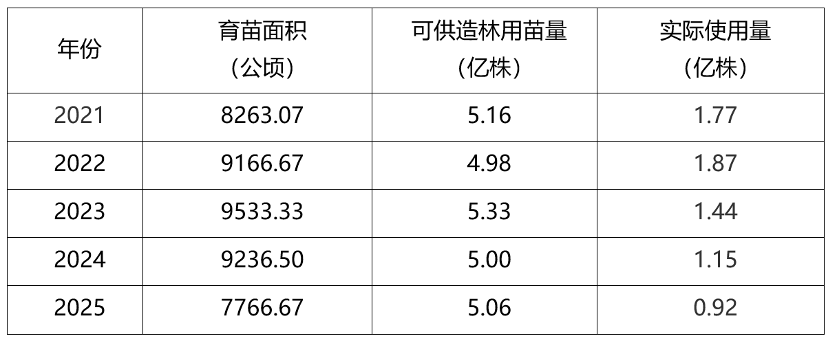2021-2025年黑龙江省苗木供需情况▼