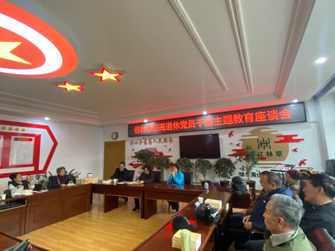 近日,省林草局离退休工作处召开主题教育座谈会,离退休党支部成员及部分老党员代表共22人参加了座谈会。