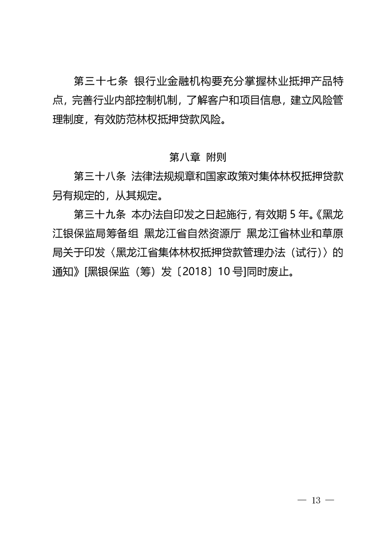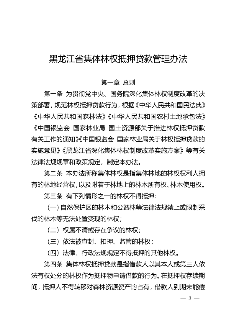 关于印发《黑龙江省集体林权抵押贷款管理办法》的通知